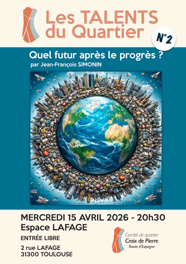 Mercredi 15 avril 2026 à 20h30 : Les Talents du Quartier n°2 Quel futur après le progrès ? par Jean-François SIMONIN Mis à jour 28 mars 2026